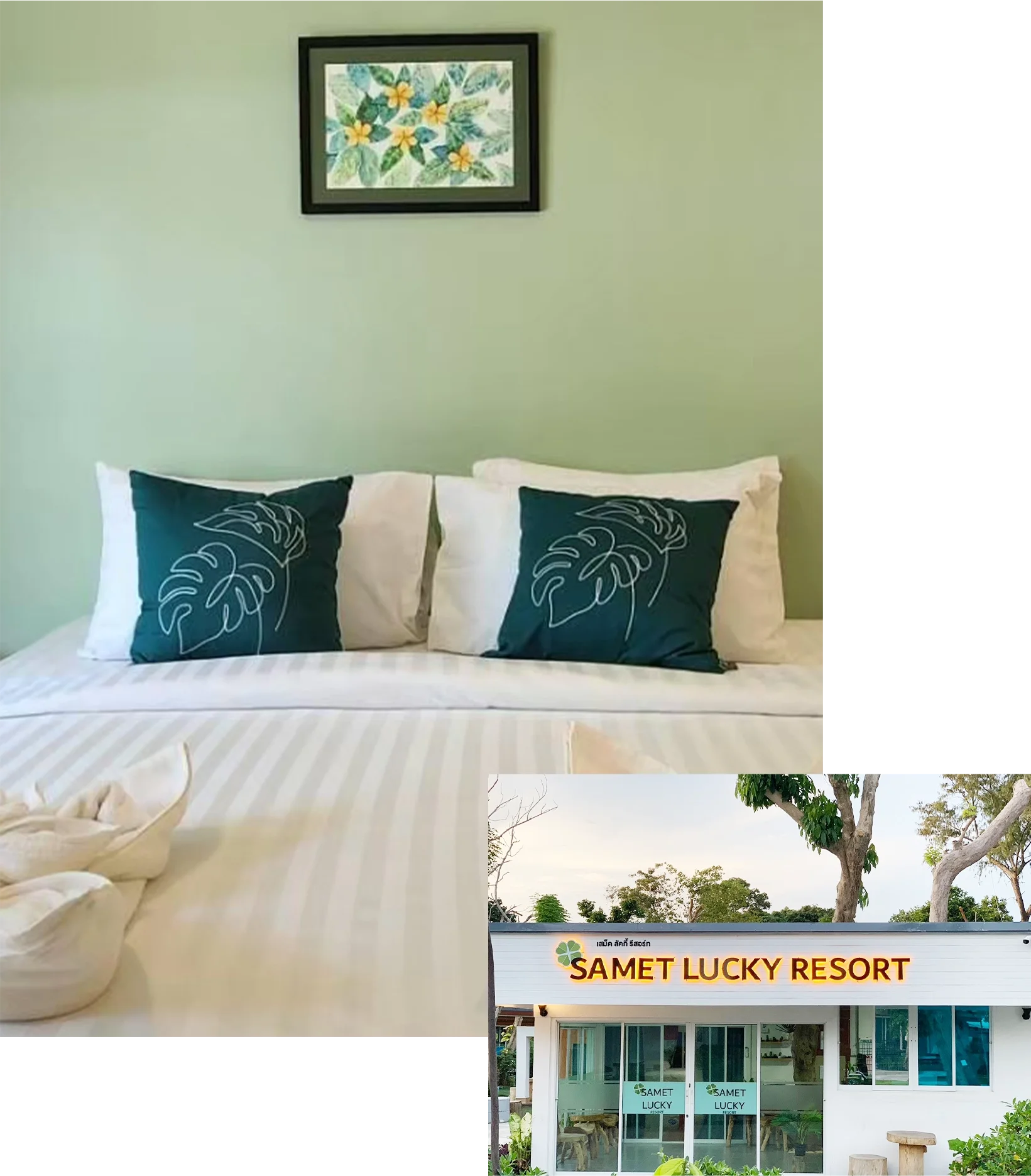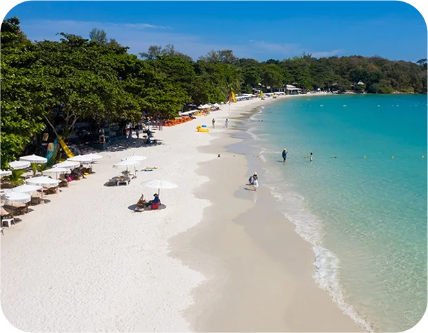 Samet Lucky Resort is located at the end of Sai Kaew Beach, offering pristine white sand, crystal-clear waters, stunning natural rock formations, and a peaceful ambiance. Guests can enjoy a variety of exceptional activities, such as kayaking along the shore, indulging in a relaxing seaside massage, and witnessing spectacular fire performances that light up the night.